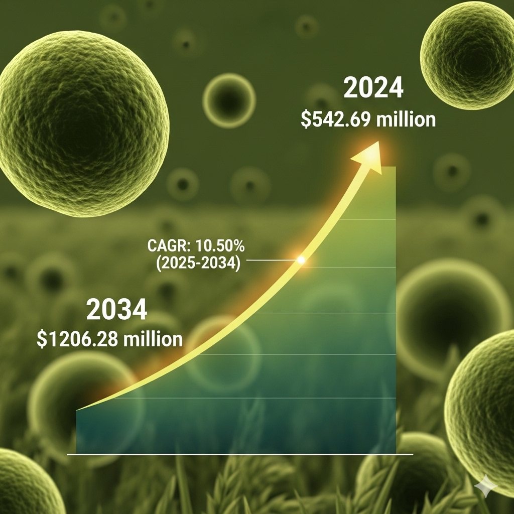 global organic yeast market size is expanding rapidly, fueled by growing consumer demand for clean-label, natural, and non-GMO food ingredients. Valued at approximately USD 542.69 million in 2024, the market is projected to reach USD 1,206.28 million by 2034, growing at a compound annual growth rate (CAGR) of roughly 10.50% between 2025 and 2034.